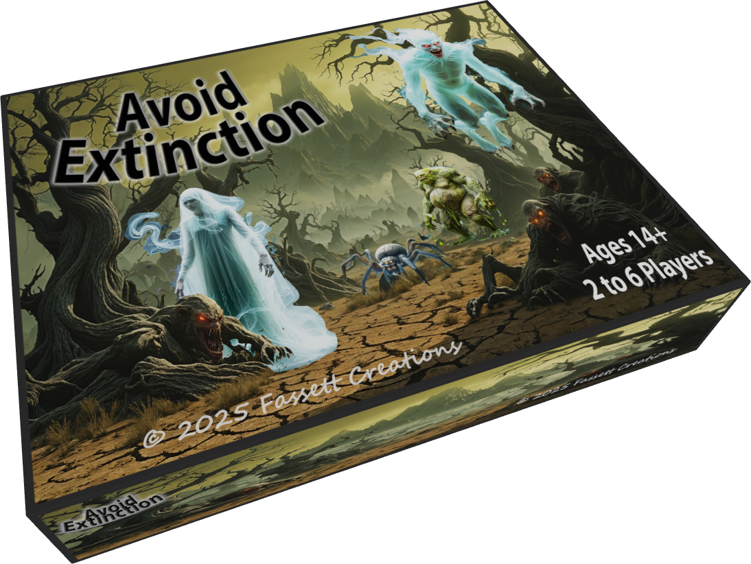 Avoid Extinction is a pulse-pounding board game of survival, strategy, and monster mayhem. Up to six daring keyholders race to escape the doomed town of Nowhereville, where creatures lurk around every corner and only one path leads to freedom. To survive, players must scavenge supplies, battle beasts, and collect ten elusive keys hidden across treacherous destination properties. With every turn, tension mounts—will you outwit your rivals and outlast the horrors, or become just another casualty of extinction? The gate is locked, the monsters are hungry, and time is running out…