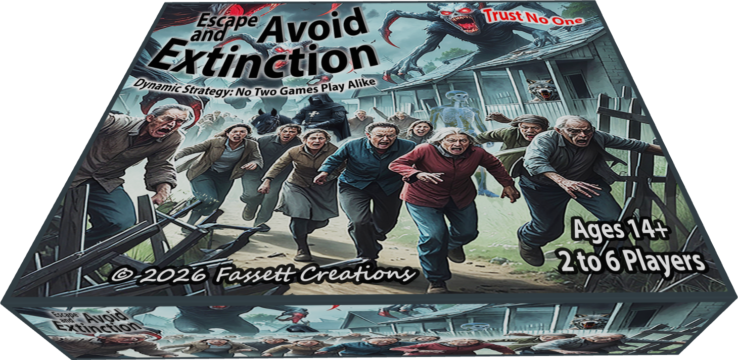 Avoid Extinction is a pulse-pounding board game of survival, strategy, and monster mayhem. Up to six daring keyholders race to escape the doomed town of Nowhereville, where creatures lurk around every corner and only one path leads to freedom. To survive, players must scavenge supplies, battle beasts, and collect ten elusive keys hidden across treacherous destination properties. With every turn, tension mounts—will you outwit your rivals and outlast the horrors, or become just another casualty of extinction? The gate is locked, the monsters are hungry, and time is running out…